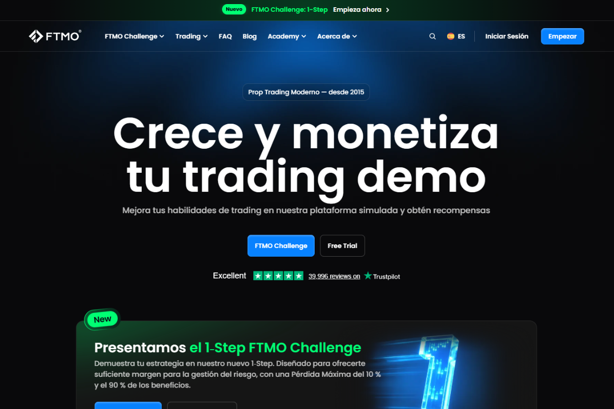 FTMO es una de las empresas de fondeo más reconocidas del sector. Su sistema se basa en un proceso de evaluación en dos fases donde los traders deben demostrar disciplina, control del riesgo y consistencia operativa. Una vez superadas las fases, los traders pueden acceder a cuentas fondeadas y recibir una parte significativa de los beneficios generados en su operativa.